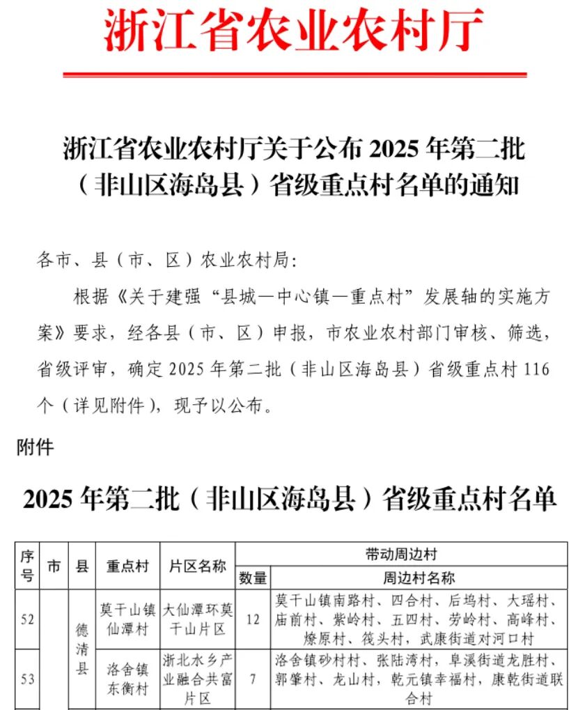 省级重点村名单公布!德清这2个村上榜!有你家吗